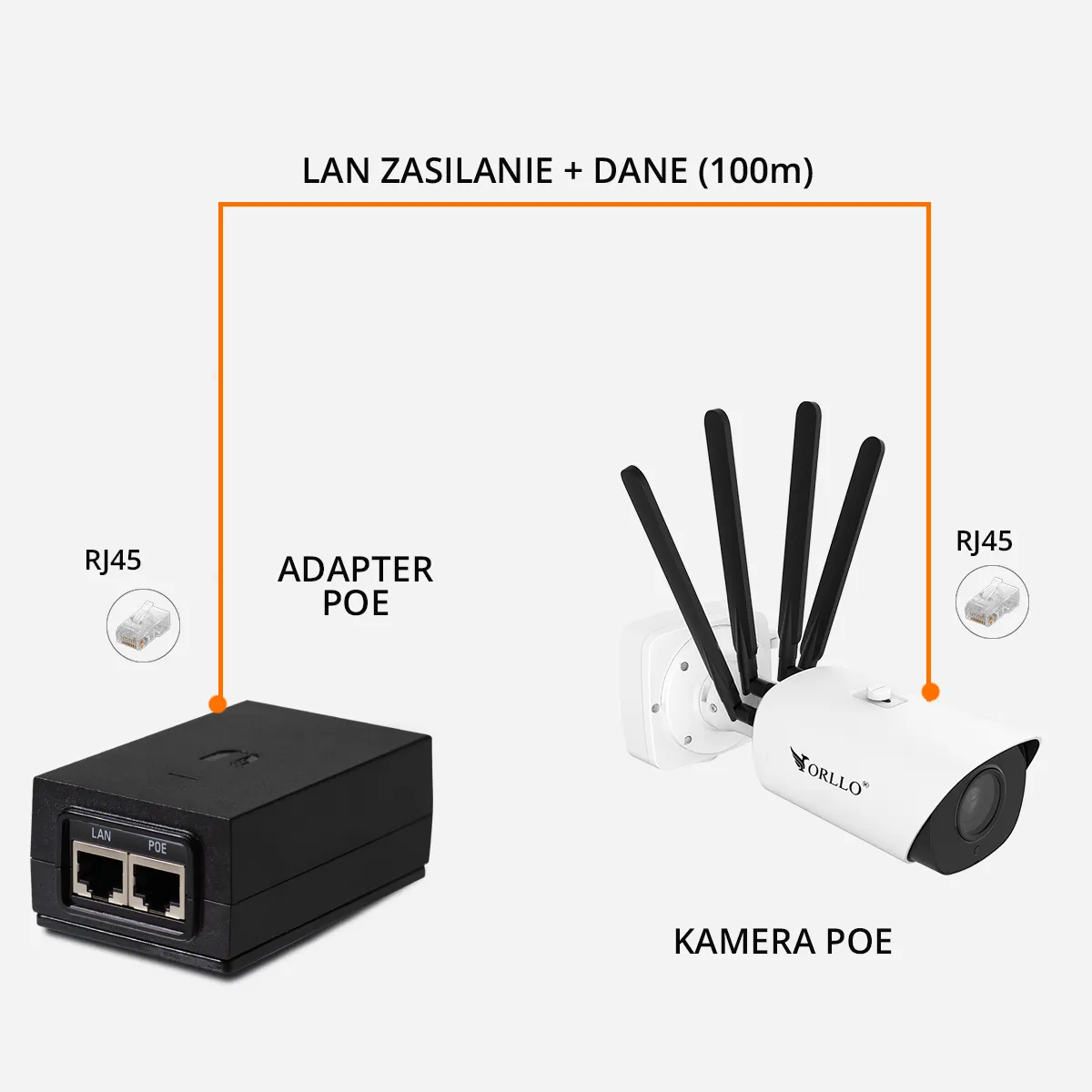 - Kamera IP POE (aktywne) - zasilanie oraz transmisja danych w jednym przewodzie LAN