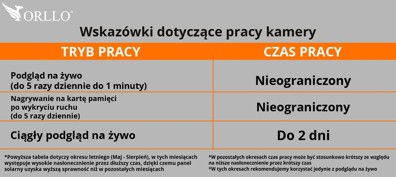 Czas Pracy Kamery ORLLO E7