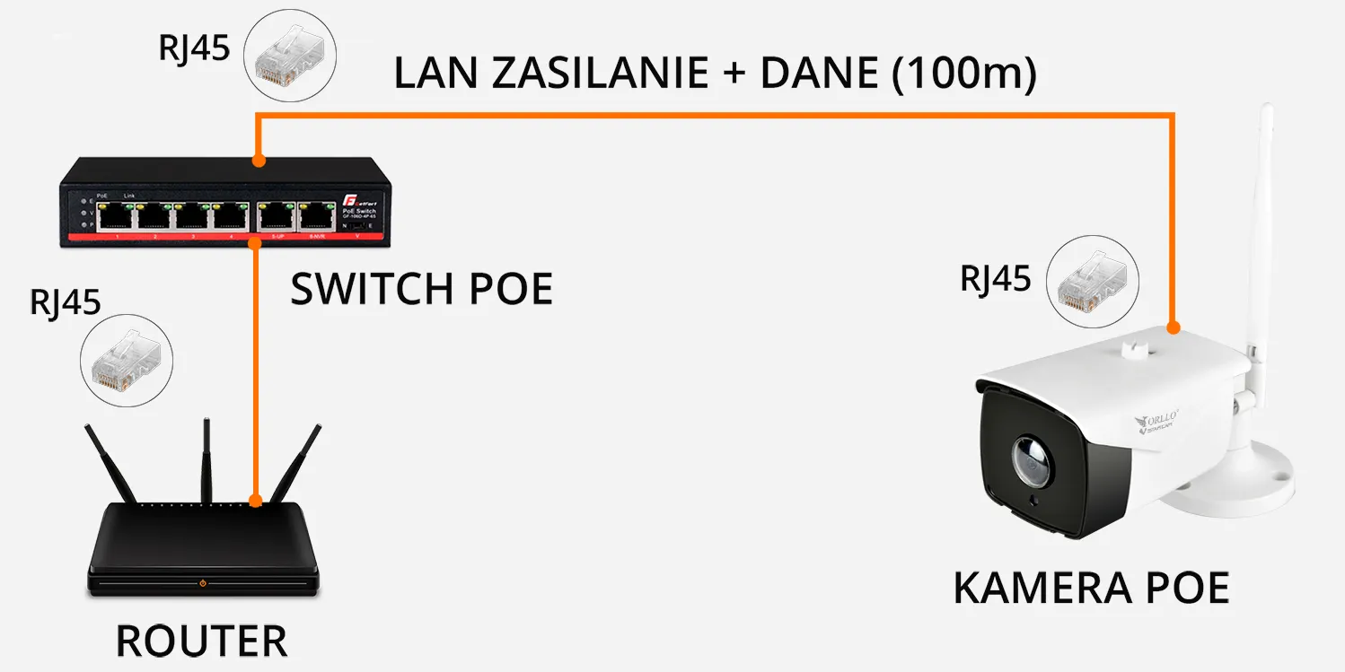 Schemat Podłączenia Kamery IP POE oraz WiFi