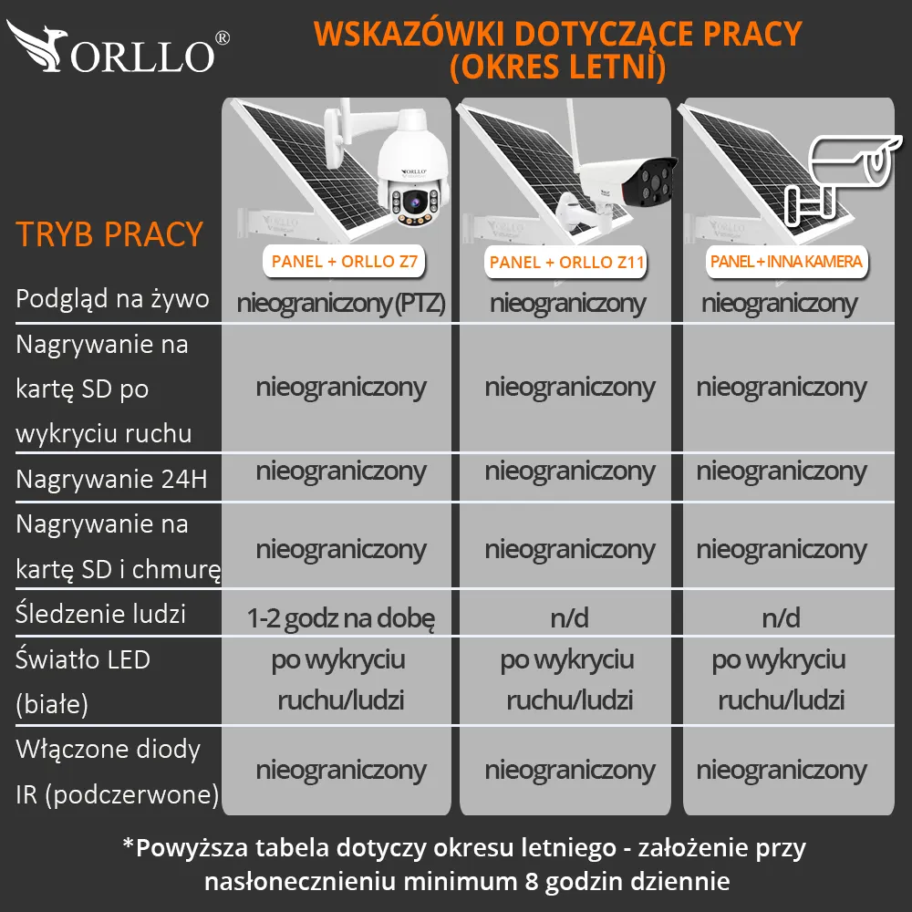 *UWAGA! Tu kupujesz panel solarny bez kamery do monitoringu. Oferujemy także zestaw z kamerą GSM ORLLO Z7 SIM lub zestaw z kamerą GSM ORLLO Z11 SIM: