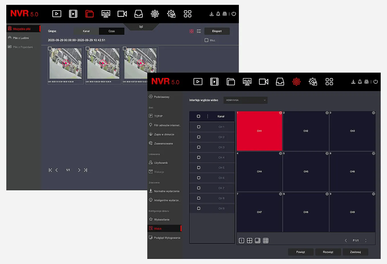 Funkcje nagrywarki NVR