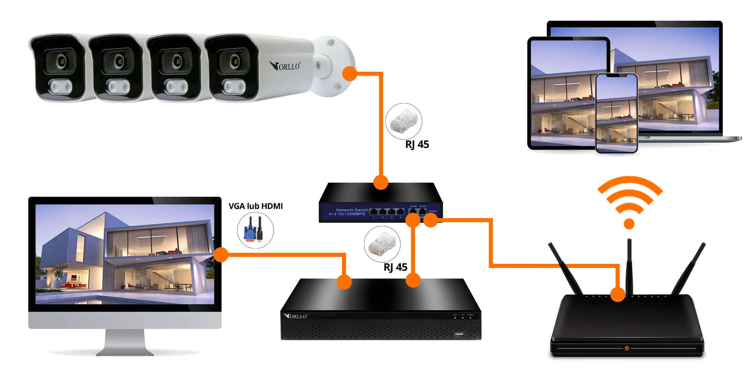 - Podgląd na żywo - w bezpłatnej, polskiej aplikacji na telefon i komputer z całego świata. Aplikacja ORLLO VISION+ z szyfrowaniem danych użytkownika oraz wideo